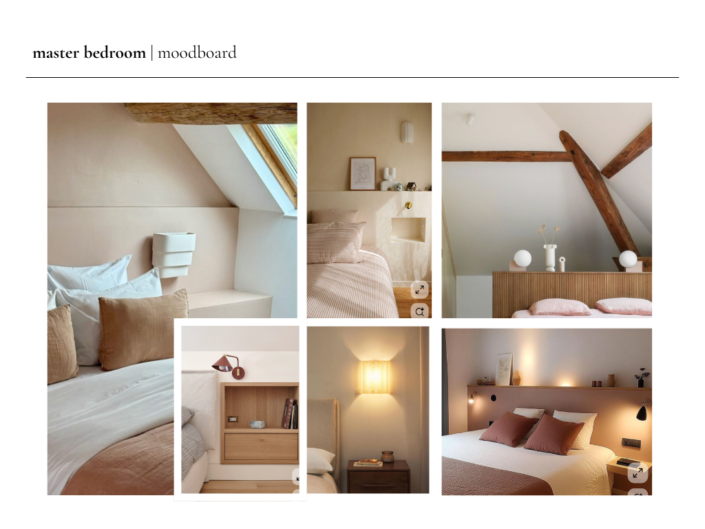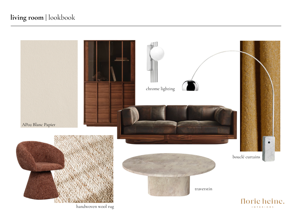 Each project begins with a clear visual direction. Through curated mood boards, material exploration, and preliminary lookbooks, I define the atmosphere, textures, and overall narrative before moving into the final design.